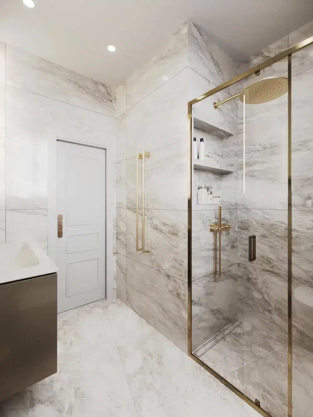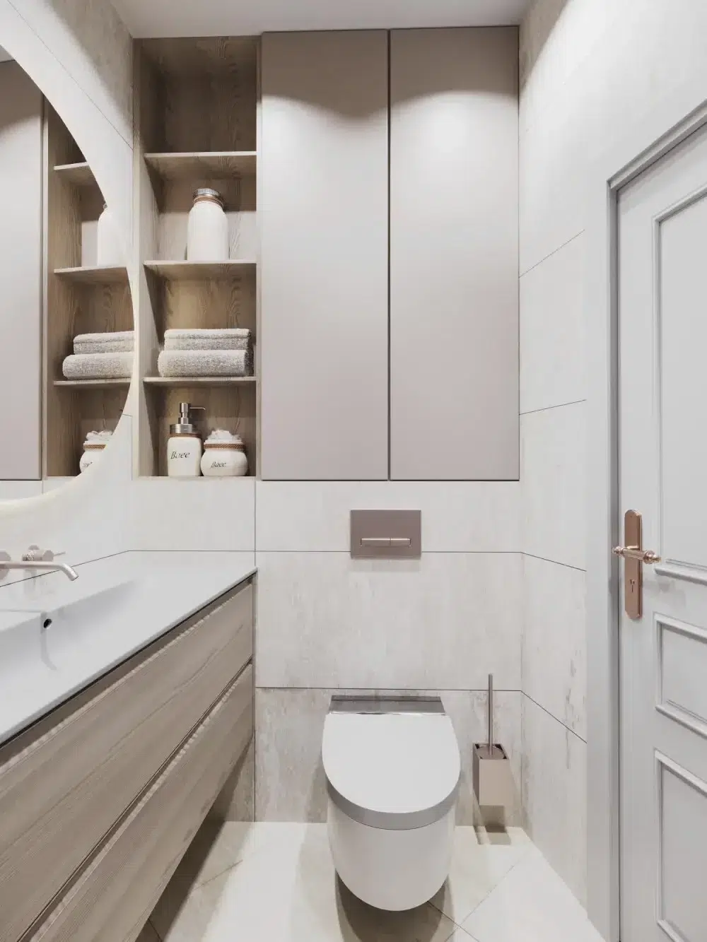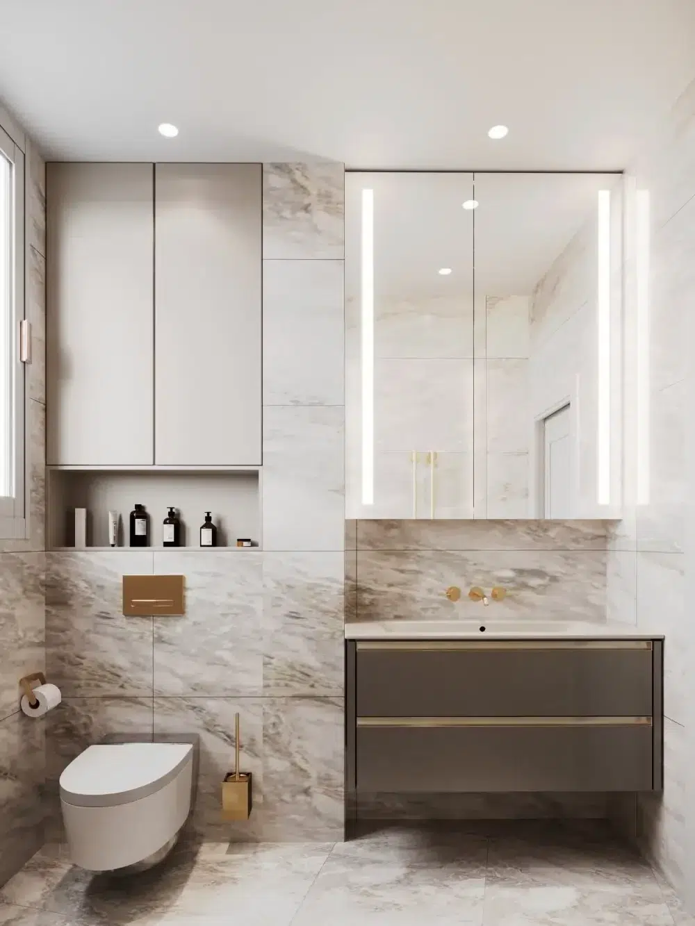 🧱 Matériaux : Mobilier sur mesure, finitions beiges clairs, appareillages Modelec, robinetterie Gessi22