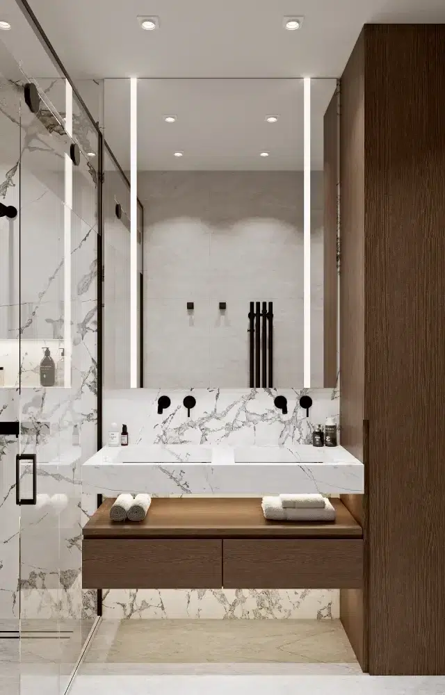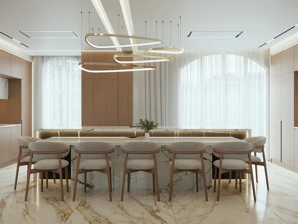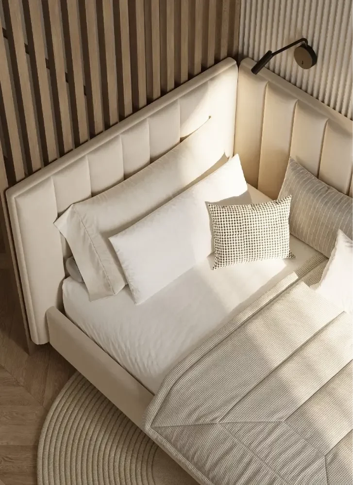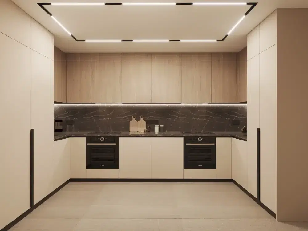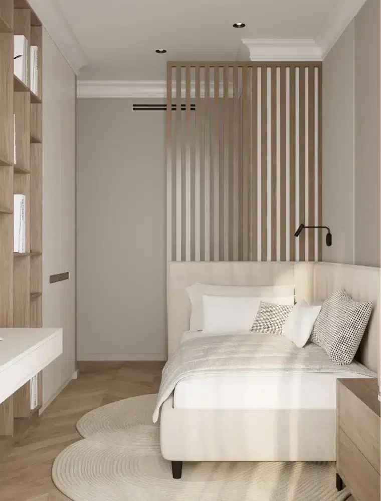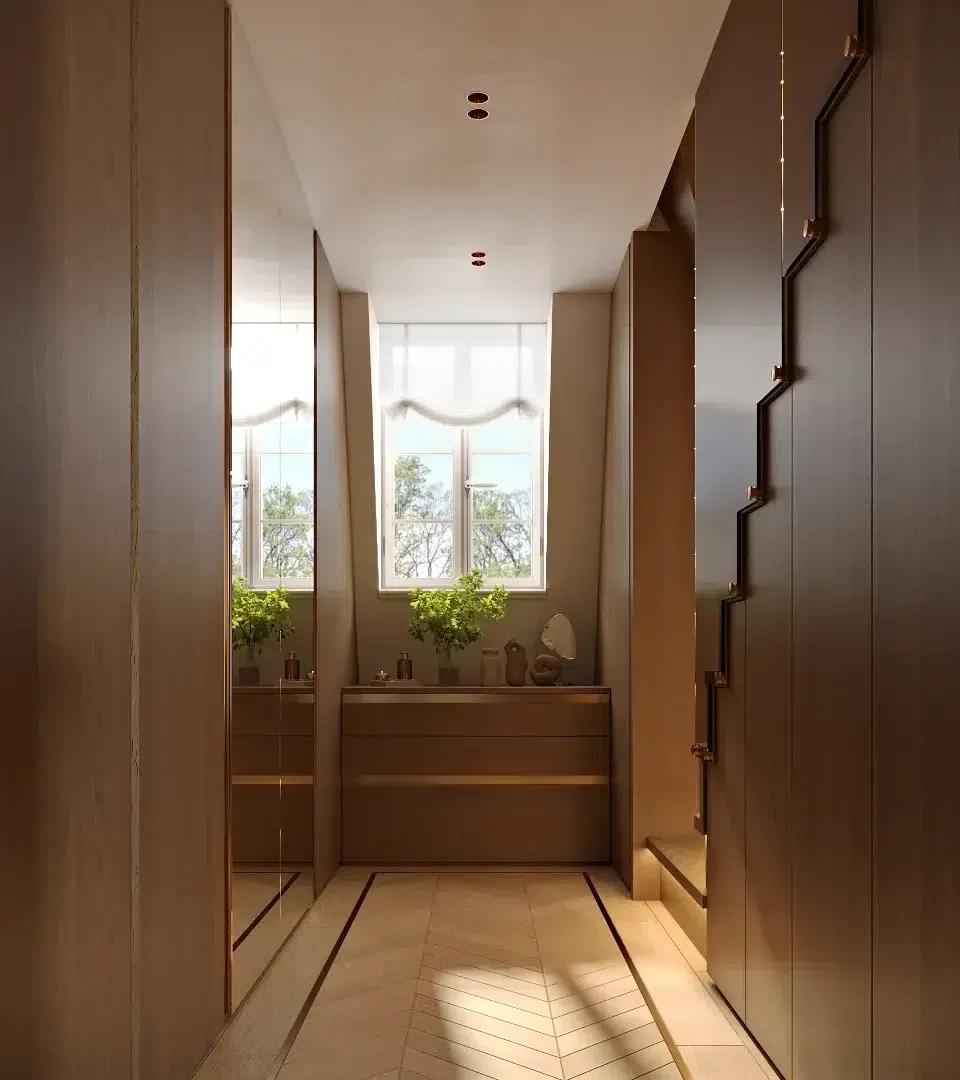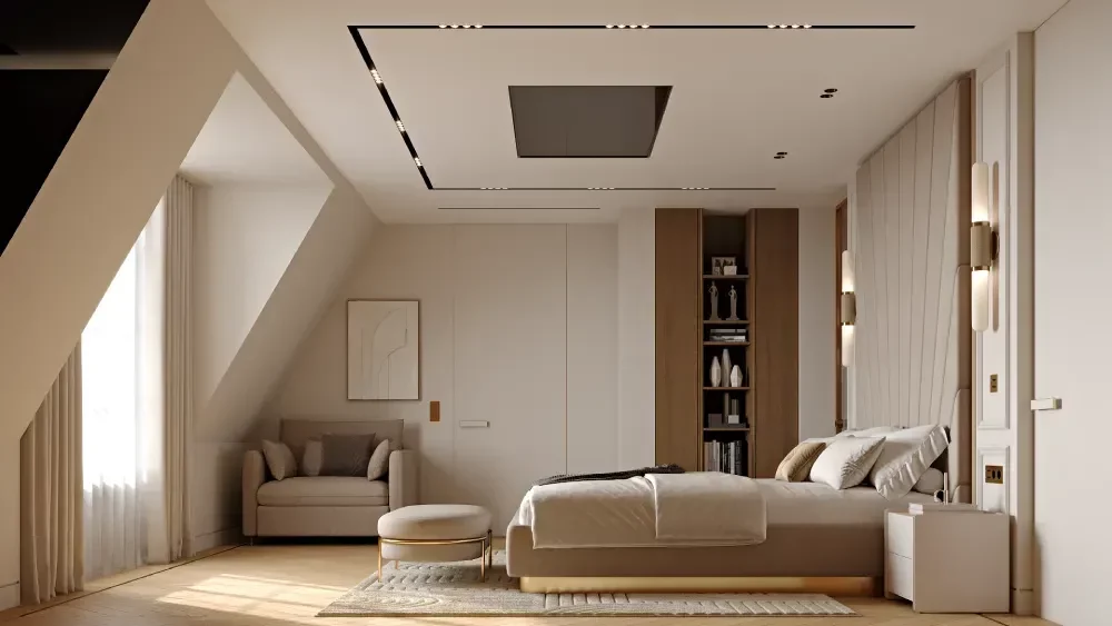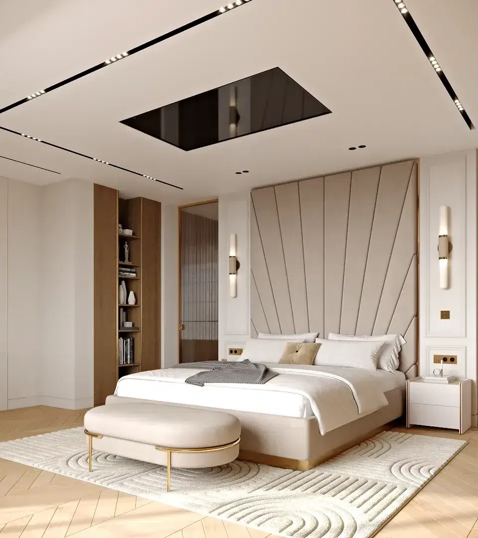 - Performance fonctionnelle : Intégration massive de rangements invisibles en chêne massif et menuiserie laquée.