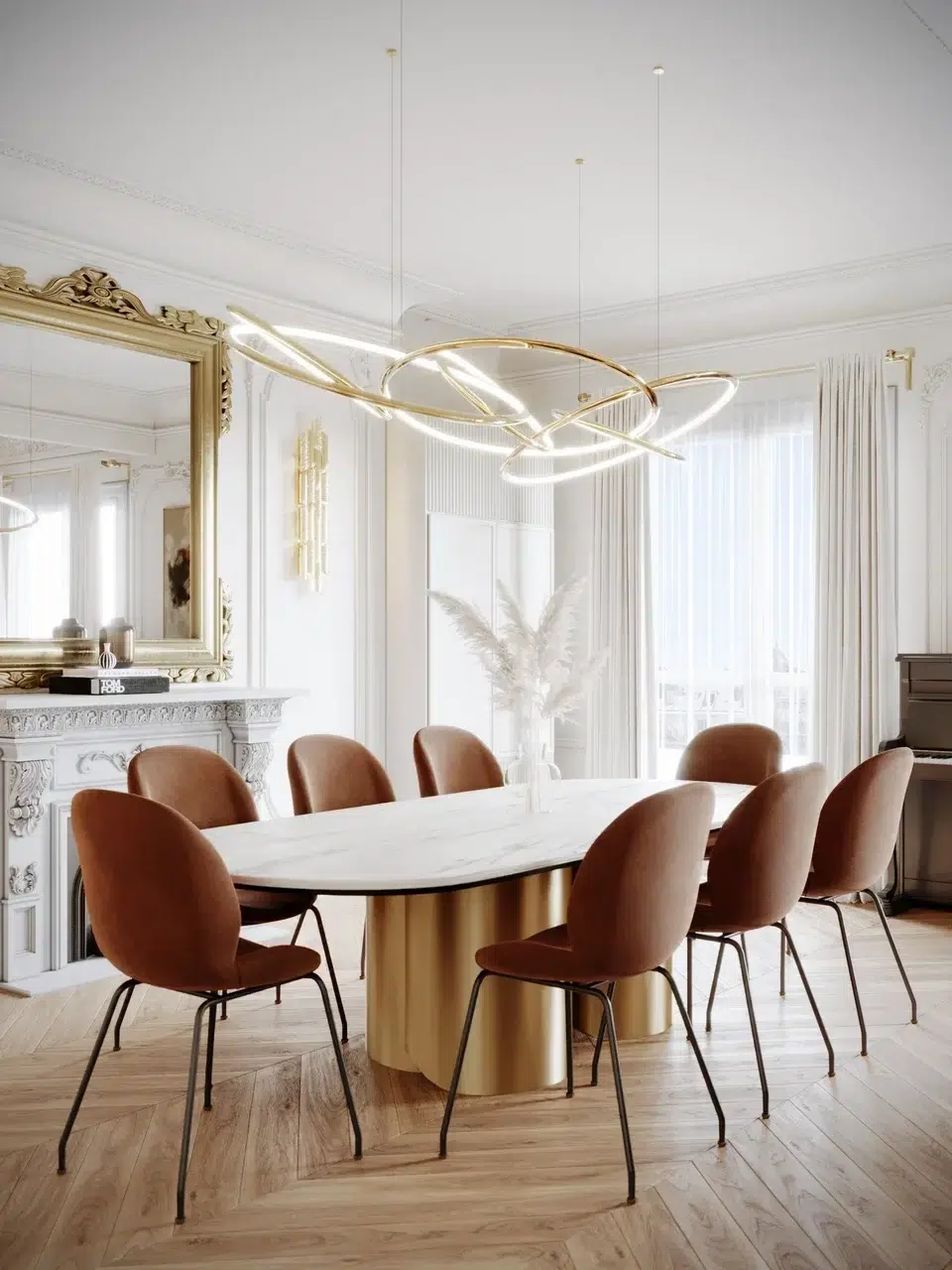 Le défi majeur de cette rénovation d’appartement Haussmannien à Paris 17 résidait dans son plan non conventionnel. En repensant l’agencement, nous avons pu dégager une vaste zone de réception incluant un salon spacieux et une salle à manger élégante, devenue le véritable pivot central du logement.